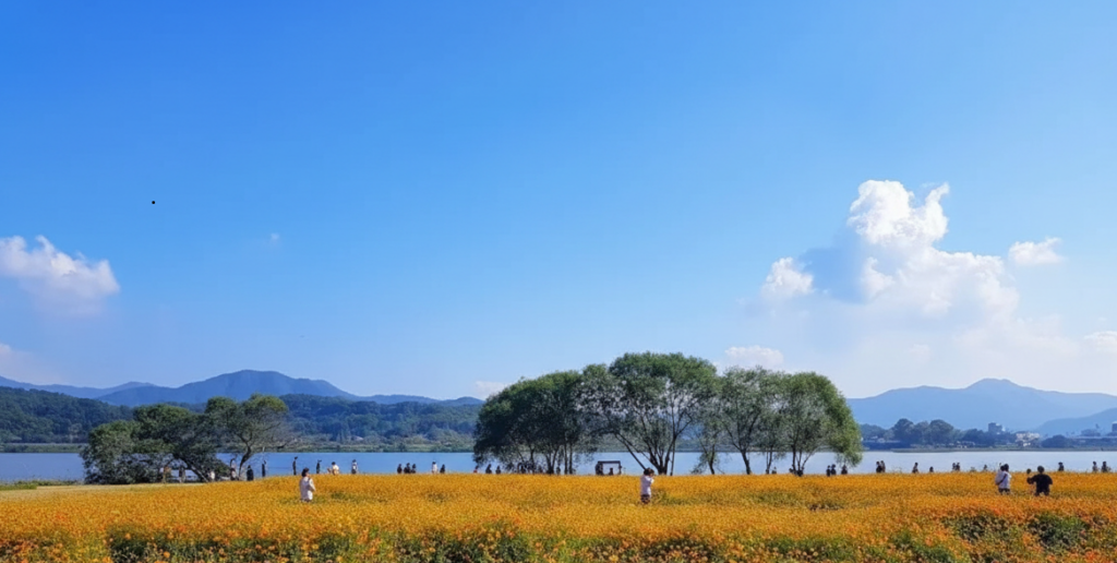 남양주 물의정원은 북한강변에 조성된 수변 정원으로, 메밀꽃 시즌(9월)과 코스모스 시즌(10월)에 특히 아름다운 곳입니다. 광활한 꽃밭과 강변 산책로, 자전거 도로가 잘 갖춰져 있으며, 아이들과 함께 방문해도 좋은 넓은 잔디밭이 있습니다. 북한강 자전거길과 연결되어 라이딩을 겸한 여행도 가능합니다.