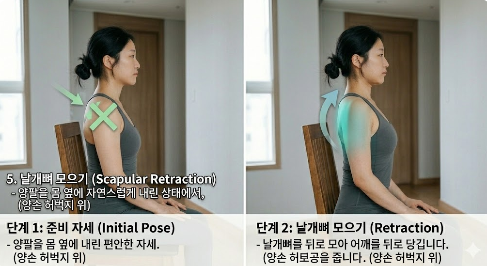 5. 날개뼈 모으기 (Scapular Retraction)